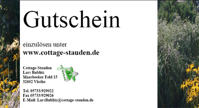 Zum regulären Bestellformular erhalten Sie eine Mail mit einem personenungebundenen Gutscheincode, welcher bei einem zukünftigem Bestellvorgang im Internet-Shop eingelöst werden kann.
